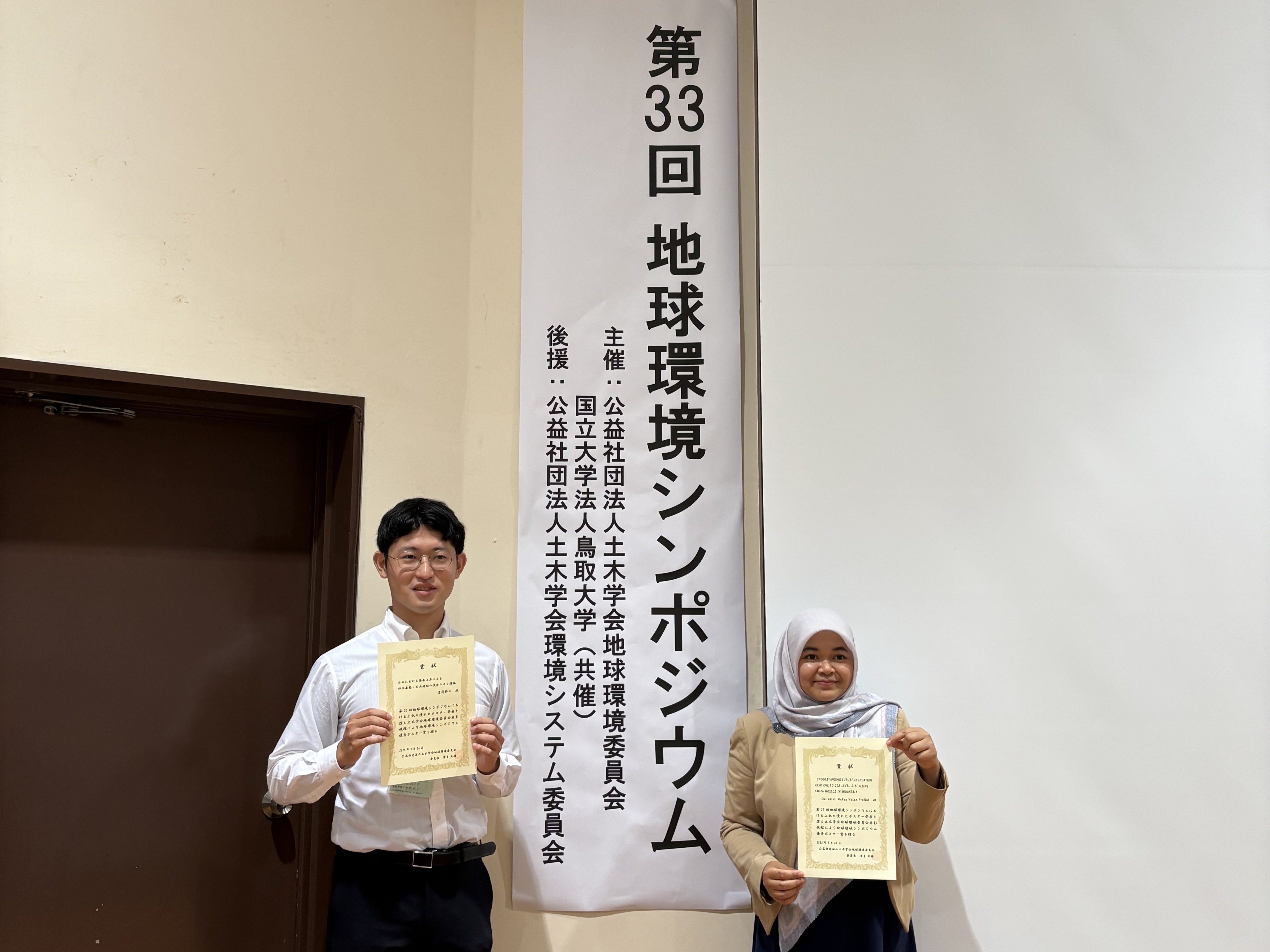 【受賞者】大学院理工学研究科 都市システム工学専攻 博士前期課程2年 岩間さん / インフラシステム科学専攻 博士後期課程2年 Wulanさん